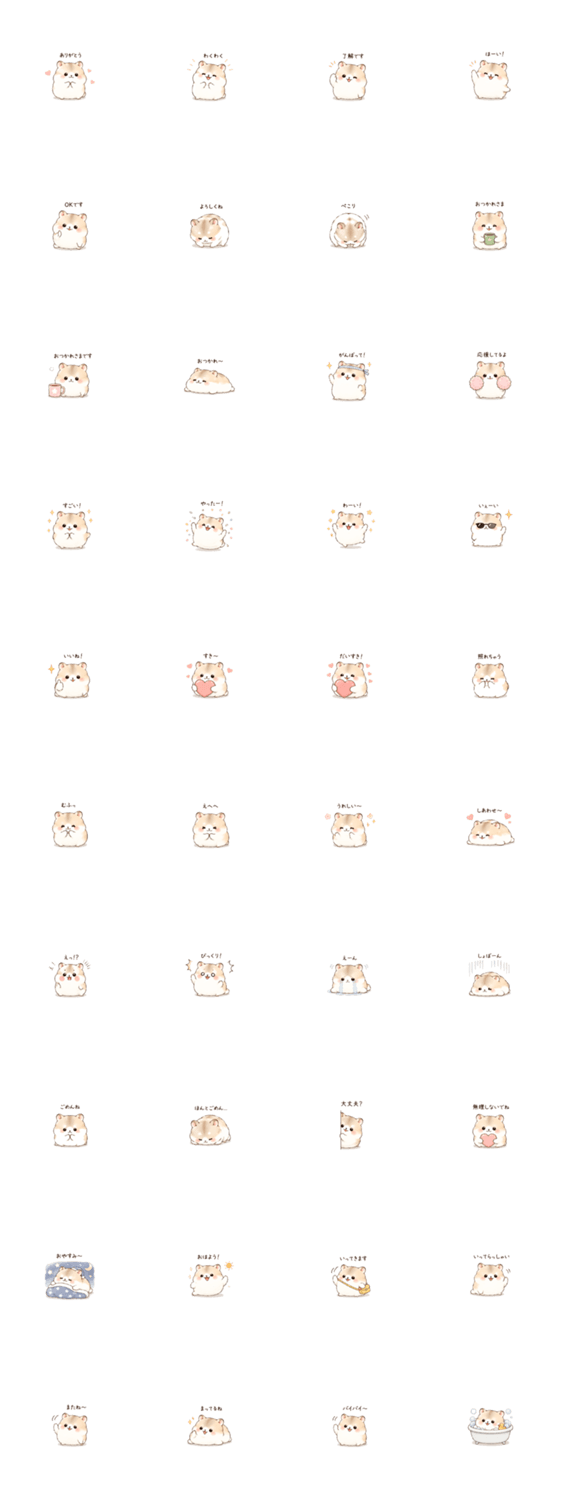 まんまるでちょっと生意気なハムスターのゆるふわスタンプ。あいさつからリアクションまで毎日使いやすい40個セット。ほんわか気分でトークをゆる〜く彩ります。