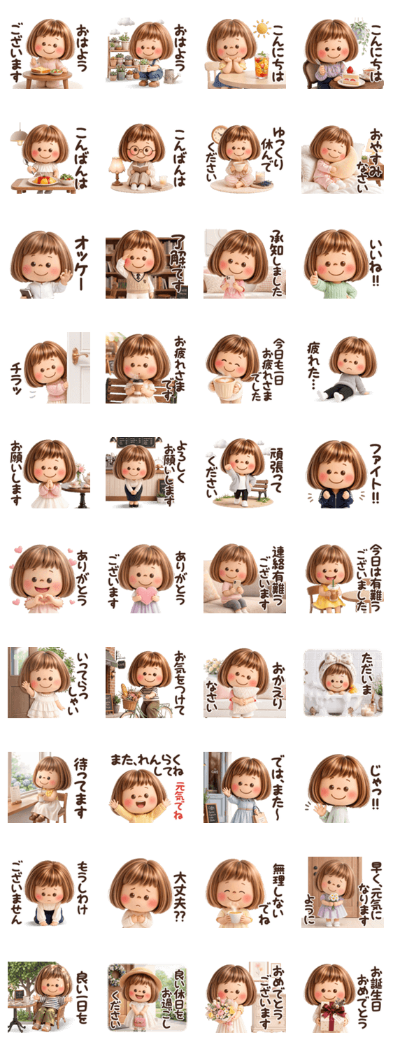 ぶちゃこがちょっぴり大人モードに♡/ママ友/新生活/学校/挨拶/連絡/役員/PTA/集まり/女子会/友達/大人女子/日常会話/敬語/待ち合わせ/グループ/ずっと使える/おかっぱ