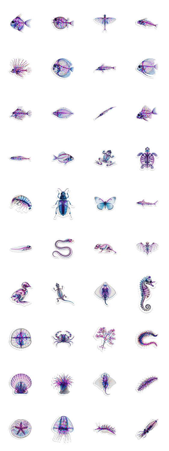 魚類動物骨格標本生物標本理科解剖学芸術的アート神秘的幻想的美しい綺麗かっこいい青いブルーピンク紫色グラデーション透明感透けるお洒落おしゃれ映えるシンプル見やすい ※このスタンプはトークルームで大きく表示されるBIGスタンプです。