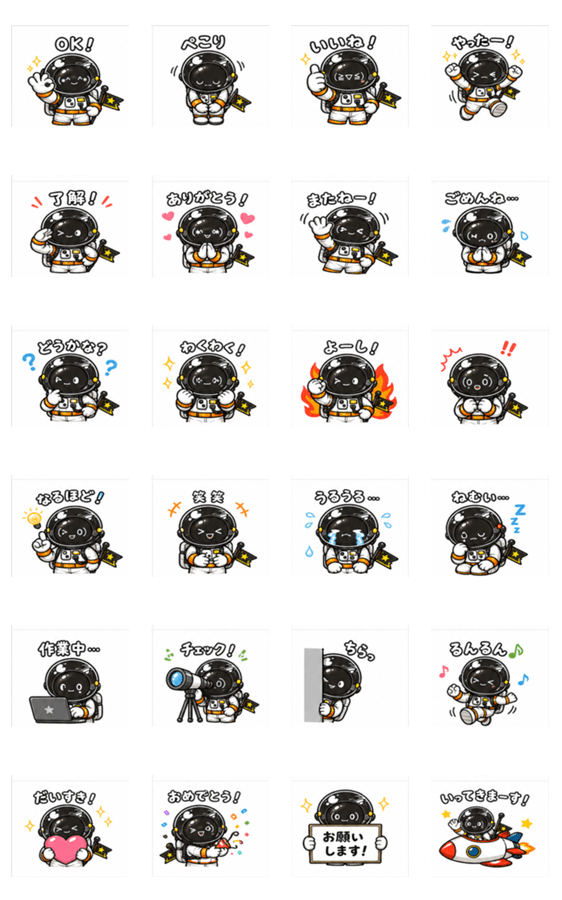 表情豊かなちびっこ宇宙飛行士!友達や家族との日常会話にぴったりです。