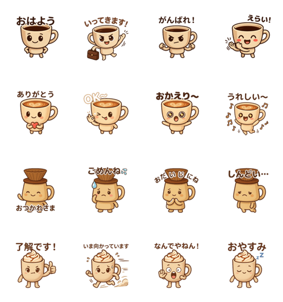 コーヒーキャラたちが、日常のひとことを届けます。 おはようからおつかれさままで、ほっと一息つけるスタンプ。 コーヒーのある日常を、もっと楽しく彩りたいあなたへ。