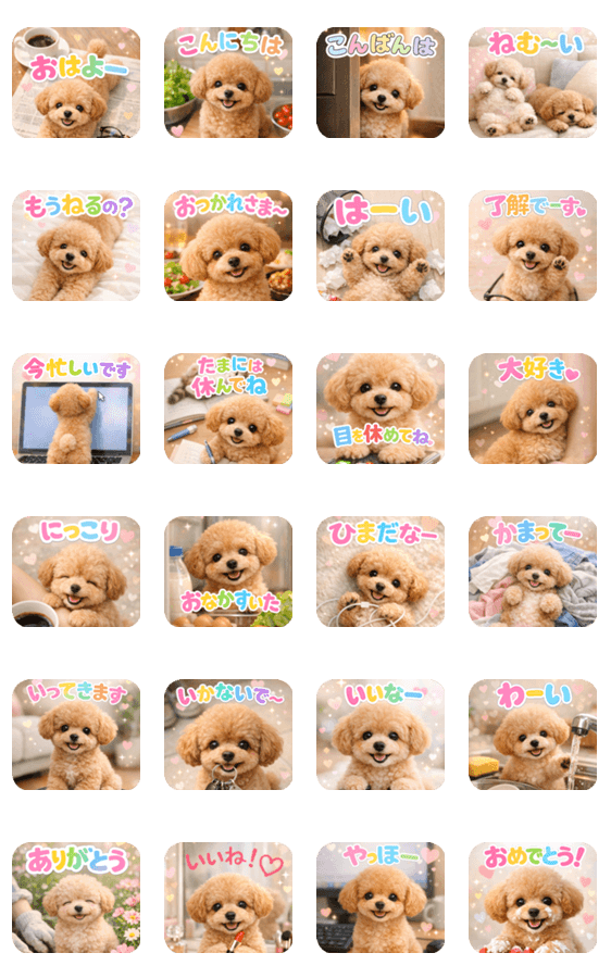 | スタンプ説明 | 飛び出す 邪魔する トイプードル 日常スタンプ/うごく/動く/挨拶/ポップアップ/トイプー/面白い/動物/子犬/実写/写真リアル/犬/アプリコット/わんこ/いぬ/山田まぽん作 |