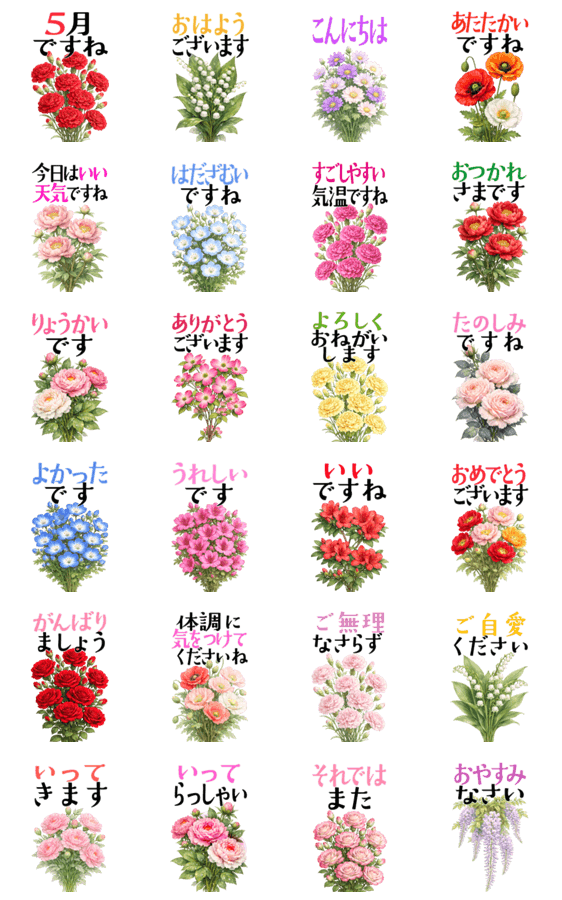 5月 春の花 大きくて見やすい挨拶スタンプ -LINEスタンプマニア