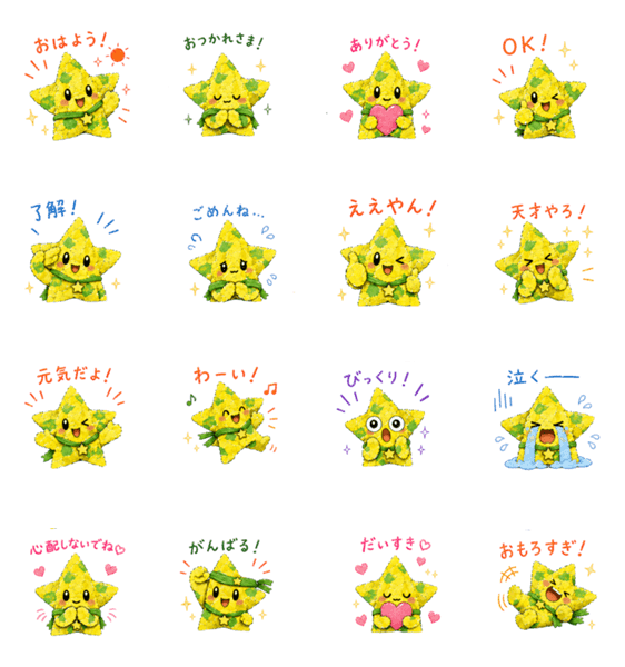 息子のちぎり絵から生まれた「ほしまるくん」。 紙のやわらかな風合いそのままに、あいさつ・感謝・そっと寄り添う応援を中心とした16種類。
