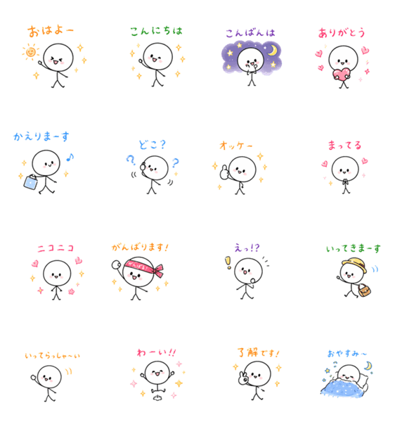 | スタンプ説明 | 毎日のチャットがもっと楽しくなる、シンプルかわいいスタンプ16種類。あいさつ、感情、返事まで日常で使えるシーンを網羅。家族や友達との会話にぜひどうぞ! |