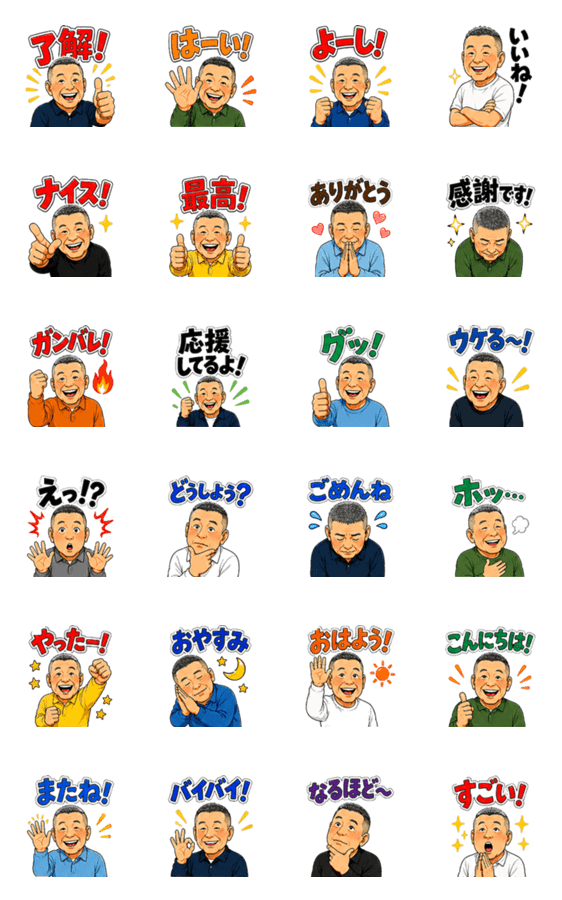 Big Text! Sports Hair Grandpa -LINEスタンプマニア
