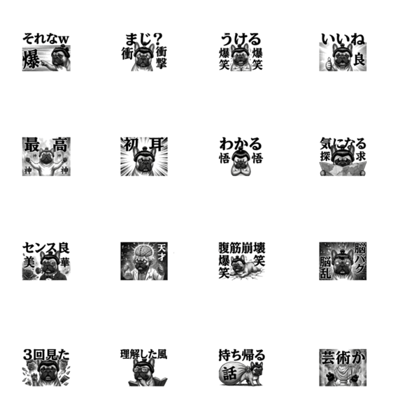 Dramatic wig-wearing Frenchie: Love Edition! 16 epic Gekiga stamps for romance, heartbreak, and confessions. Send your feelings with intense drama and impact!