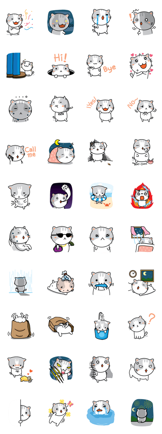 | スタンプ説明 | Hi! my name is Natty Cat.I'm a white cat with a grey on my head. I love everybody and i want to make you a happy. |