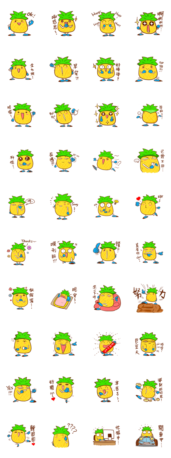 | スタンプ説明 | Pineapple King always enjoys his life. Downloading the stickers, it will let you feel happy ever day! |