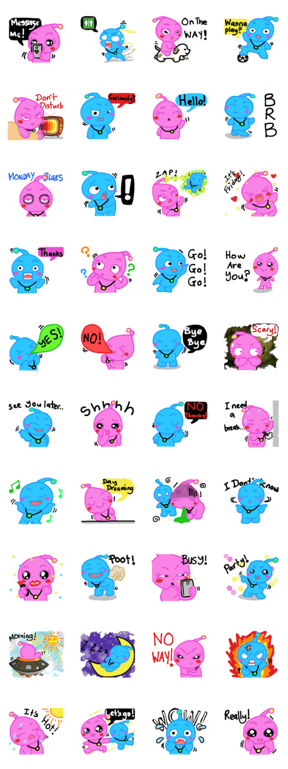 PinkiとBluuは、LINE上でついにです!これらのキュートで愛らしいステッカーとお友達とチャットを開始!