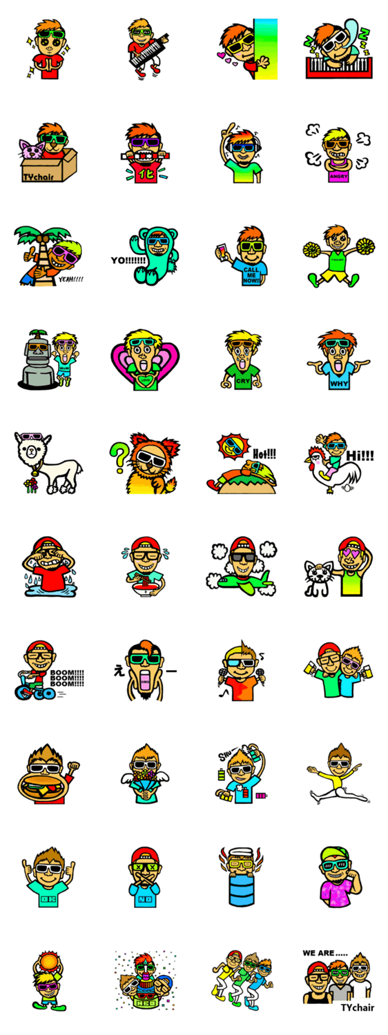 宮崎出身音楽ユニット『TYchair』の公式スタンプがついにLINEへ登場!切り絵師『KORE』のLINE書きおろしスタンプ多数!!キミもユーモア溢れるTYキャラでメッセしよう!