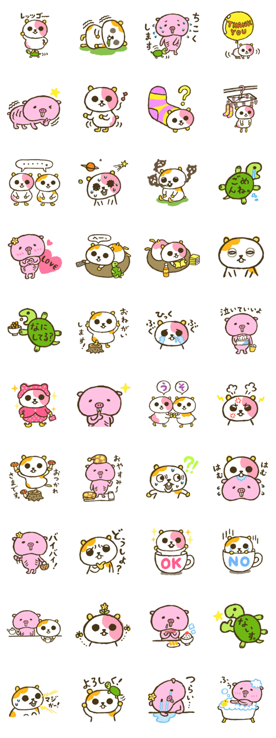 | スタンプ説明 | ハムスター、ハダカデバネズミ、ときどきカメ。友達をかじったり、靴下に入ったり、キノコをとったり気ままに激しく生きる。それがまえ歯フレンズ! |