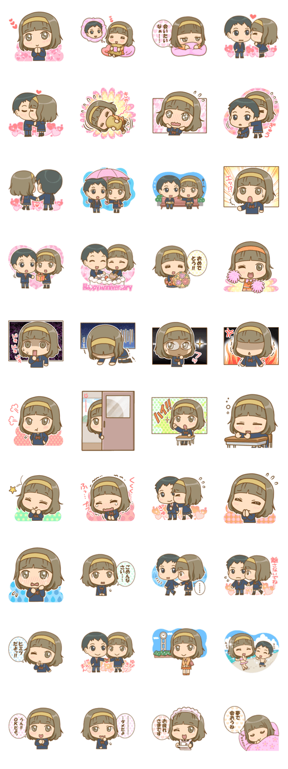 | スタンプ説明 | 女子高生の恋する上田さん。彼との胸キュンでイチャラブなシチュ満載!彼氏の「横田くん」スタンプと一緒に使ってLINEでラブラブに!4コマ漫画【こいパラ】第1弾。 |