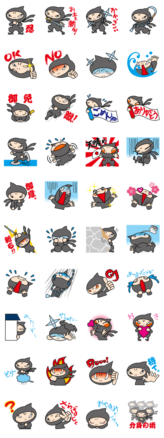 スタンプ説明 忍びのにんにんが、あなたの気持ちをお届けします。