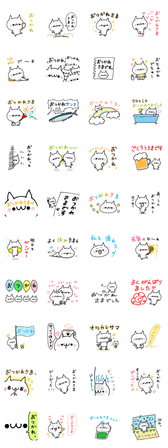 色々なお疲れさまがセットになったぬこだよ。普段使い、敬語、赤ちゃん言葉、ダジャレなど。好評「星空うまうまのぬこ」シリーズ!
