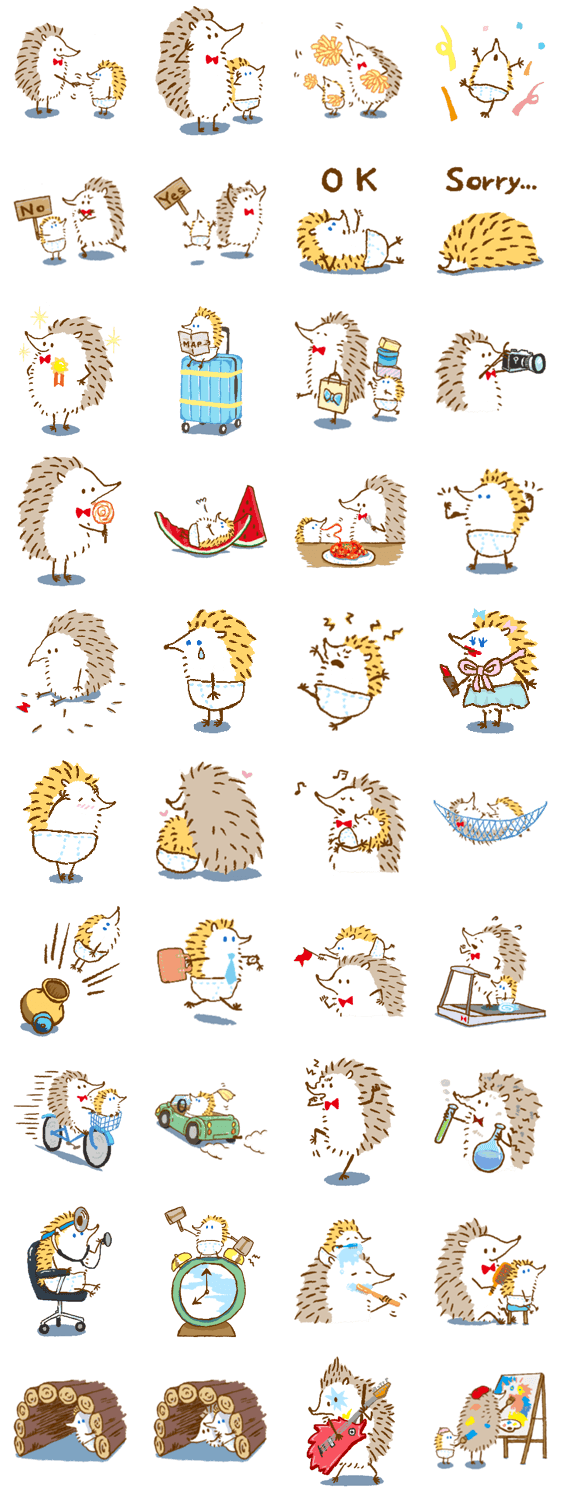 イニーのスタンプ第二弾。ヨツユビハリネズミのEeny (イニー)に友達のMoe (モー)が増えました。彼らと一緒にゆったり会話を楽しんでください。