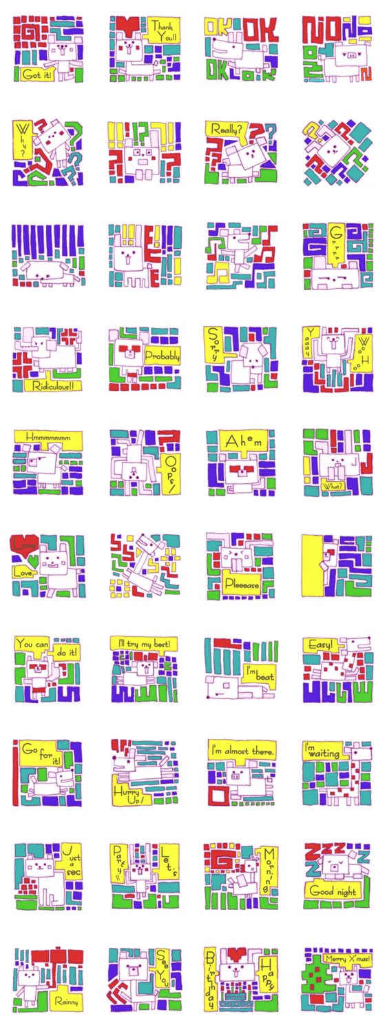 イラストレーターLULUの、タイルみたいなスタンプ。可愛い動物たちがモザイクタイルの中に潜んでます。日常会話で使えるものを集めてみました。敷きつめてね!