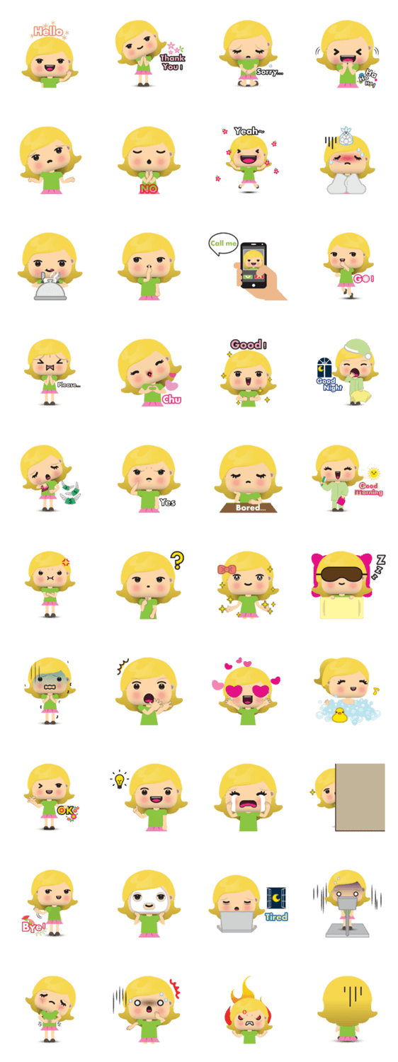Gigi is a little lovely girl with blonde curly hair. She has many cute expressions which you can use to make your chats more fun!