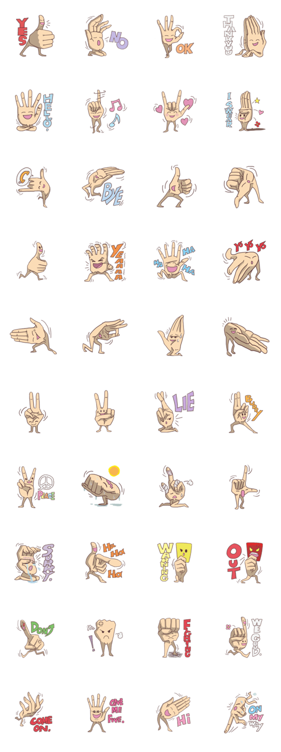 | スタンプ説明 | Handy are the friendly species that have only hand, face and small leg but the face can move all over body it easy to use them as your hand expression |