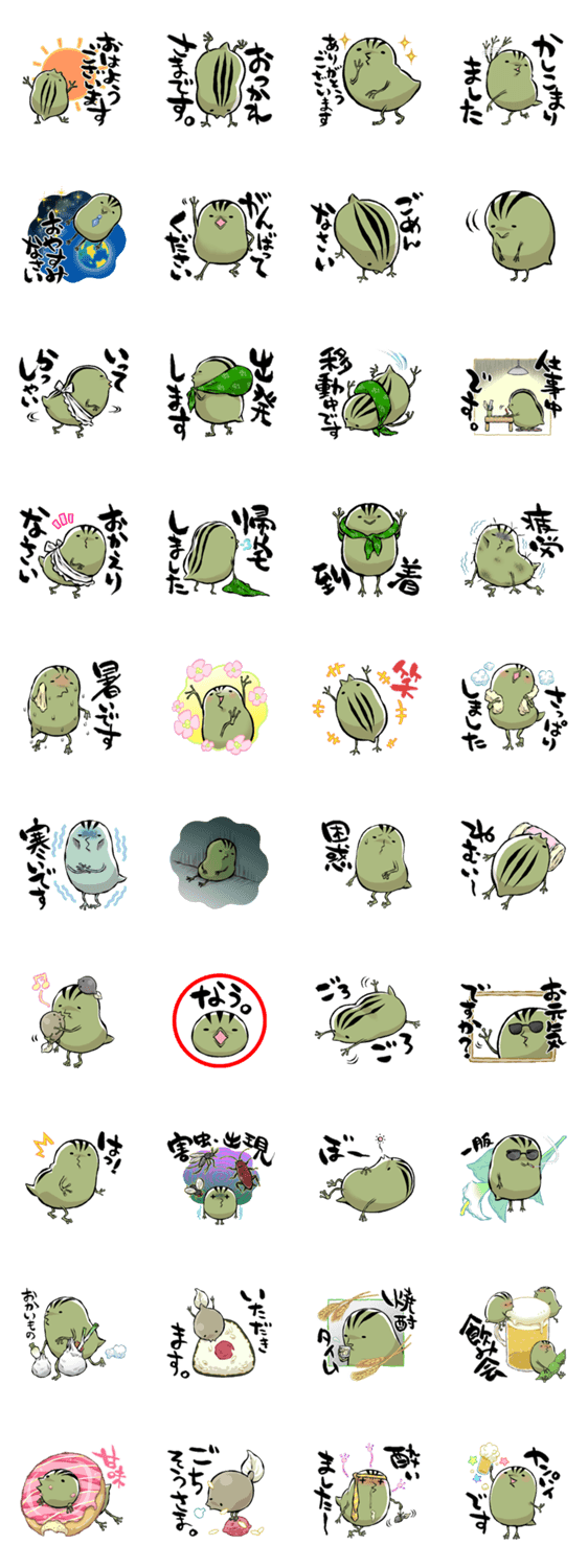 日常会話に使えそうな、蛙とおたまじゃくしのスタンプです。