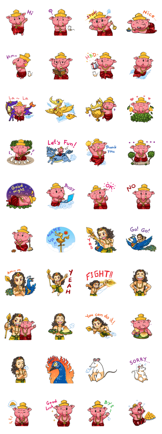 | スタンプ説明 | Two brothers Lord Ganesha and Lord Kartikeya play around the Kailash's forest, let's enjoy with 2nd series of little Kailash. |
