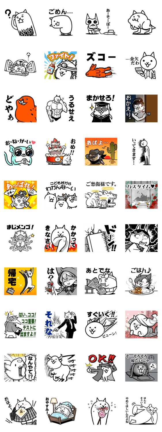 大人気アプリ「にゃんこ大戦争」の超個性的なキモかわネコたちが、さらに大集合! ツッコミどころ満載のスタンプでトークの場に笑いの渦をもたらすにゃ!