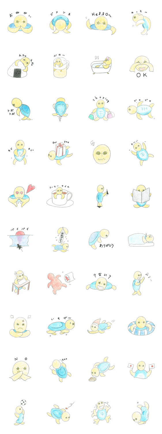 | スタンプ説明 | Everyday life of the lovely sea turtle, Kamekoo. |