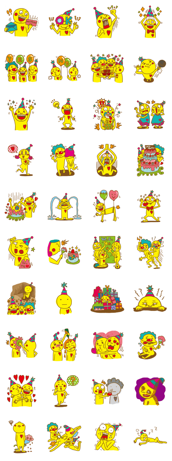 みんな大好きパーティ!パーティのいろいろなシーンを切り取って、オリジナルキャラクターでスタンプにしました!楽しく使ってみんなの会話を盛り上げよう!
