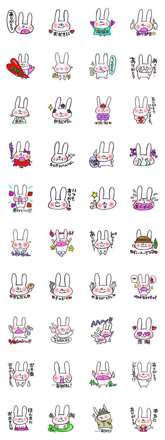 うさぎが、いろんな言葉やいろんな方法で「ありがとう」とお伝えします。いろんなお友達にお礼の言葉をおくろう。