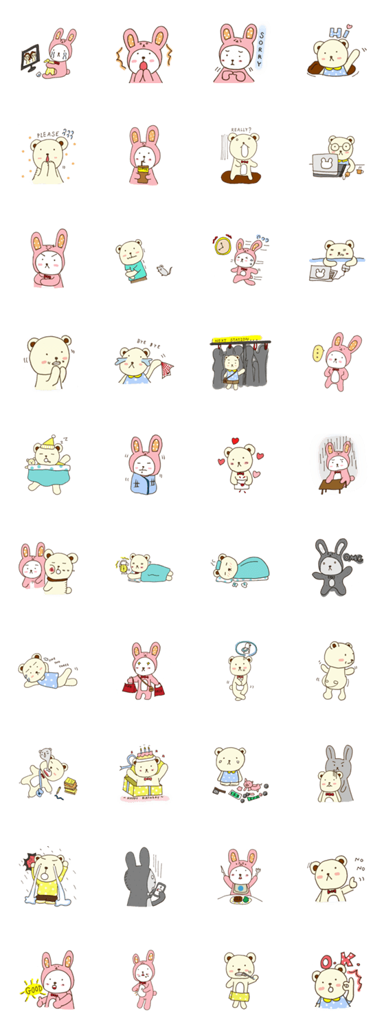 Muki, a joyful polar bear who loves to dress like a bunny. He has another bear friend names Migu, who has a strictly life. However, they can have fun together.
