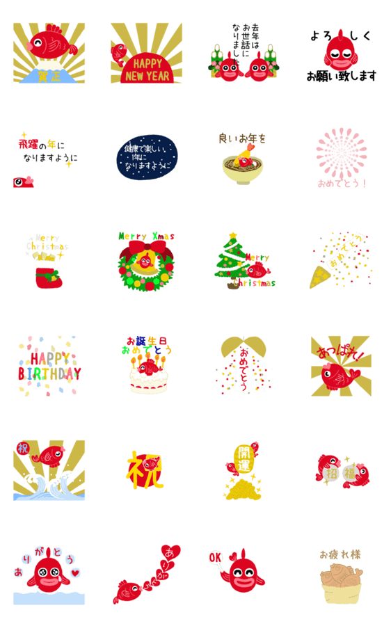 めで鯛!(お正月+誕生日+クリスマスなど) -LINEスタンプマニア