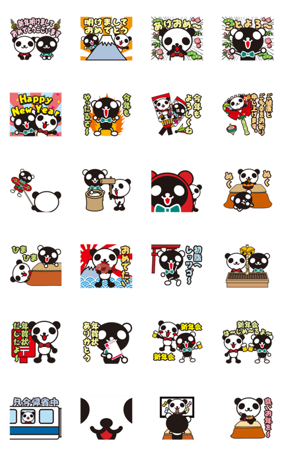 動く白黒パンダのお正月スタンプ登場!!