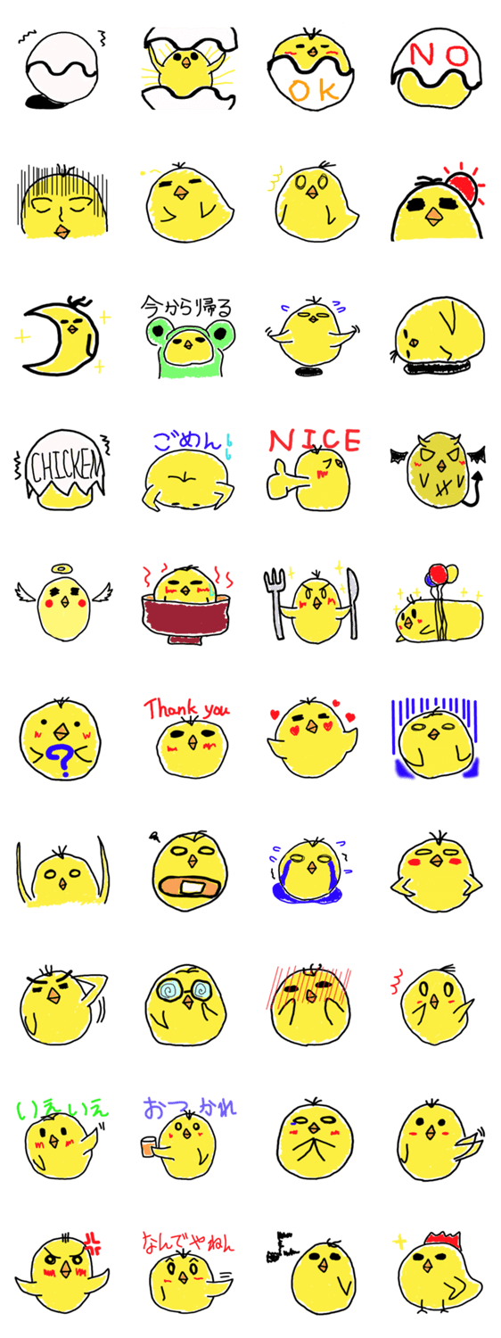 適当に塗られたヒヨコがクセになるスタンプです。ぜひ使って見てください。