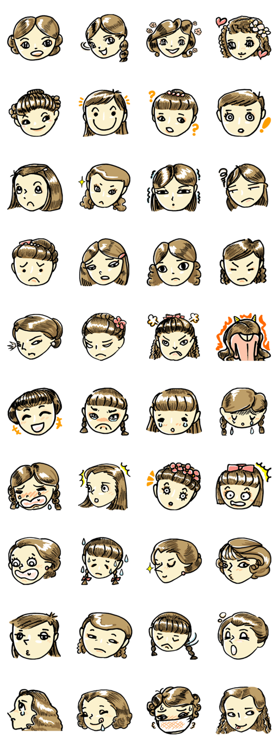 日頃頑張っている女子たちの表情をスタンプにしました。