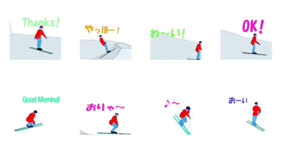 動くスキーフリースタイルのアニメスタンプ -LINEスタンプマニア