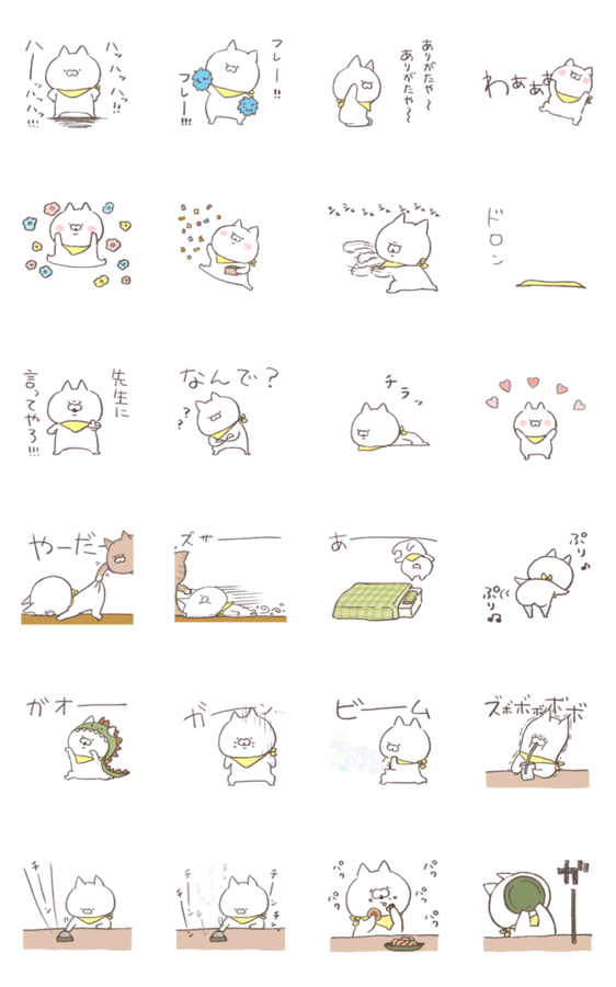 子供のような動きや言葉を言う、猫のスタンプでございます。
