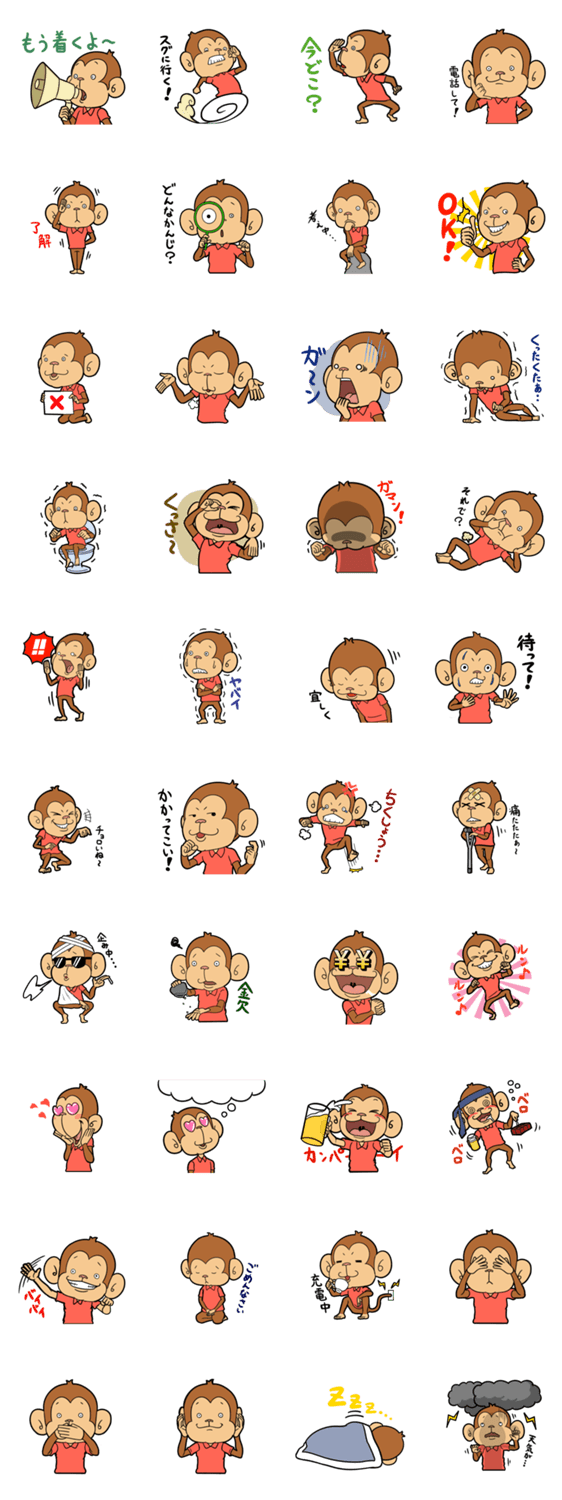 | スタンプ説明 | these are stickers of monkey named chamekichi! when you communicate with your friends they are very useful.have fun! |