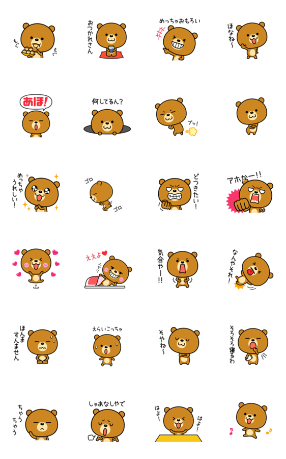 関西弁をしゃべるチビくまのアニメーションスタンプ第2弾。いろいろな場面で使いやすいスタンプです。
