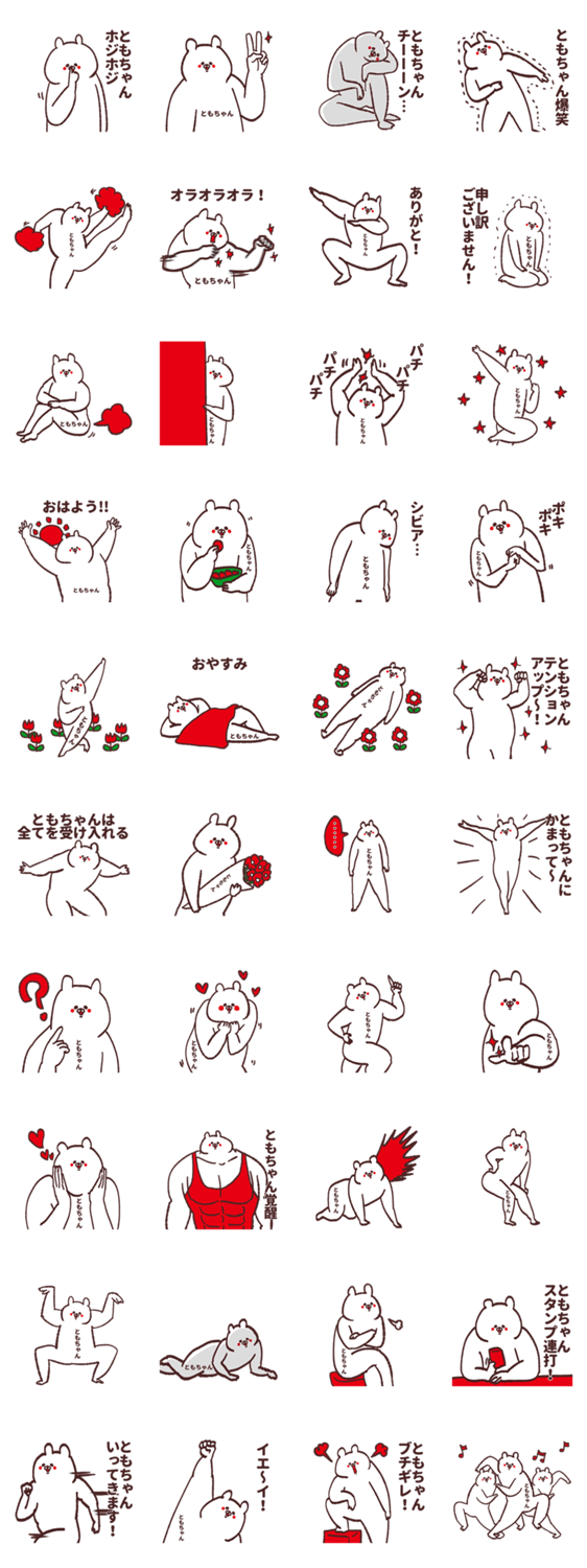 あだ名が[ともちゃん][ともちゃん]の人が使うと楽しい名前スタンプです。女子なら,ともこ,ともみ,ともか,ともよ。男子なら,ともえ,ともや,ともき,さんなど!笑えます!