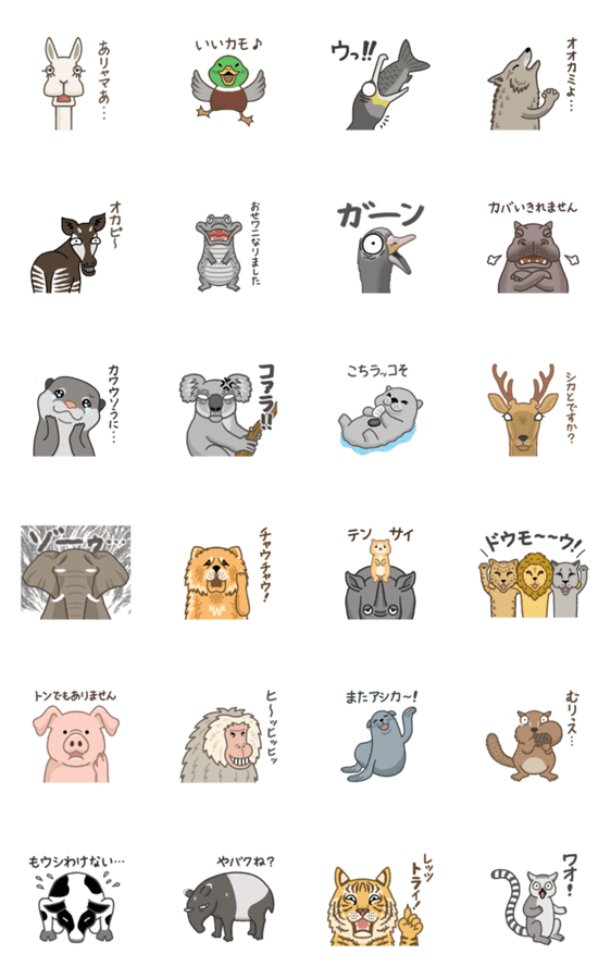 動物のダジャレスタンプです。思わずクスッと笑ってしまうアニメーションで、面白楽しくお話しましょう!