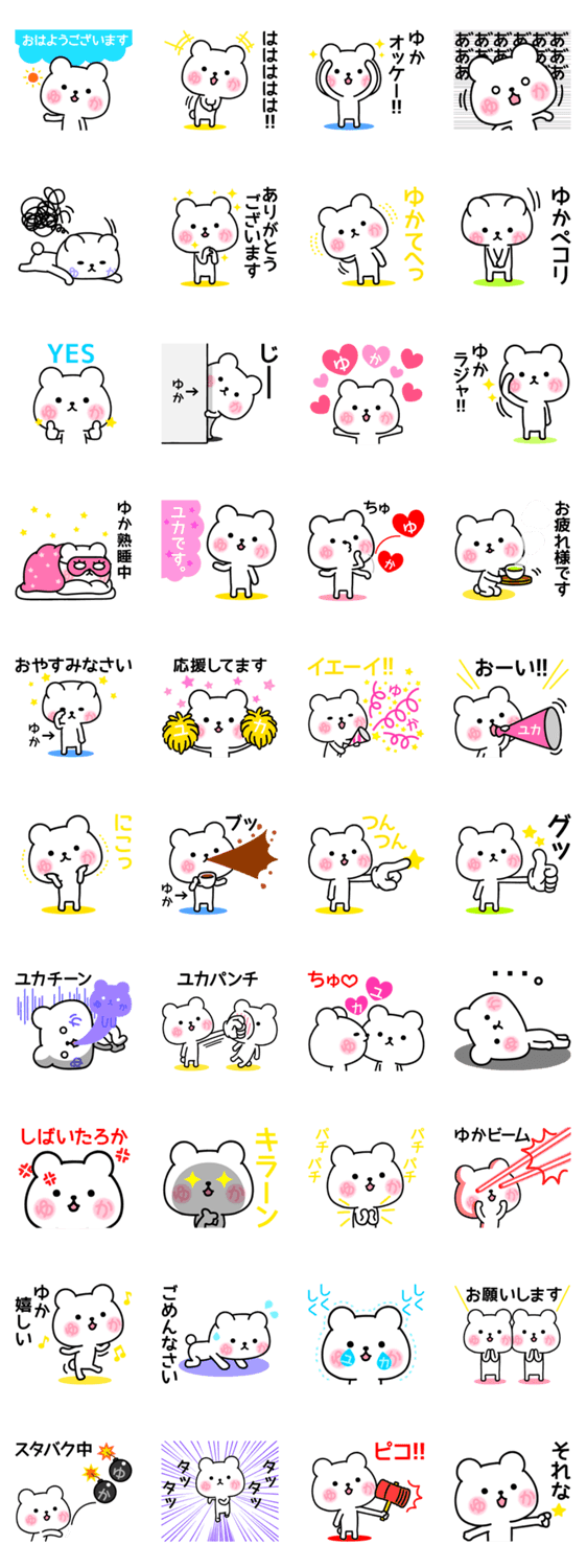 ゆか/ゆかちゃん(友香、有華、由香、結香、由佳、優香、優花、ユカ・・・)さんたちが使う専用名前スタンプです。スタンプ40個入り