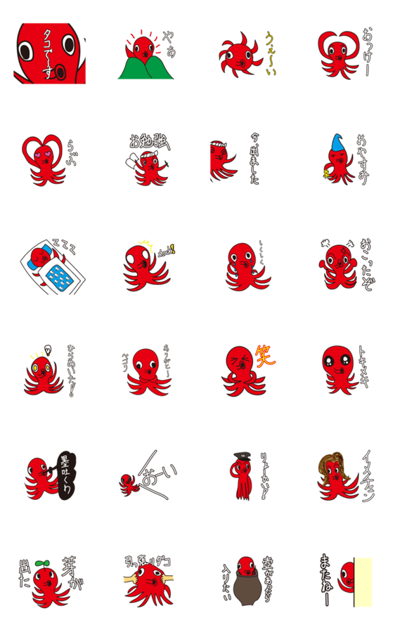 キモカワいいタコのキャラクター「チューチュータコカイナ」の、アニメーションスタンプバージョンです♪