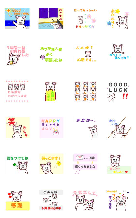 スタンプ説明 動くかわいいラッキー犬と日常会話を楽しんでね!