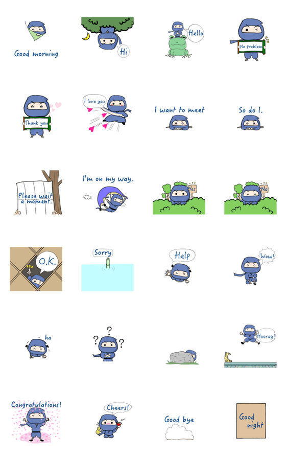 | スタンプ説明 | 忍者があなたにお供致す! 忍者参上!を英語版・動かないスタンプでまとめました。 |